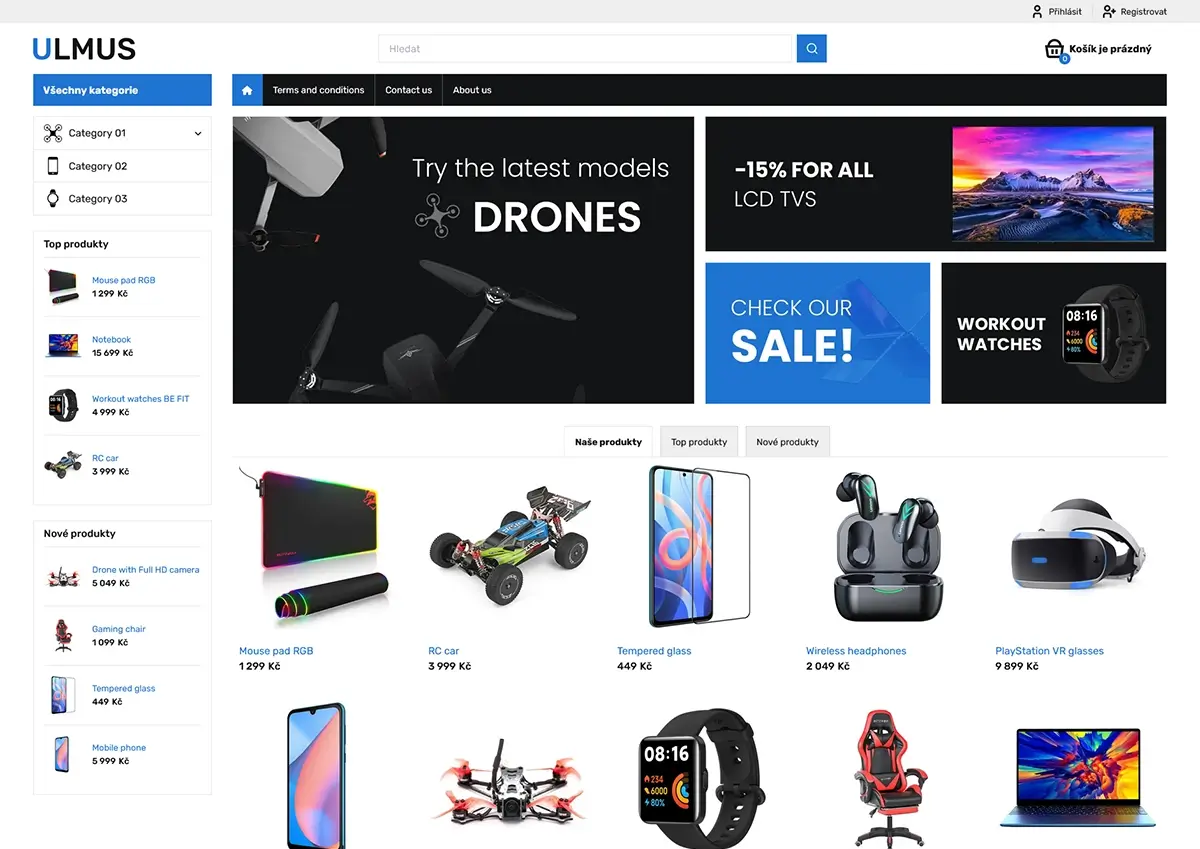 - Možnost označování produktů na ty, které jsou skladem a na ty, které skladem aktuálně nejsou